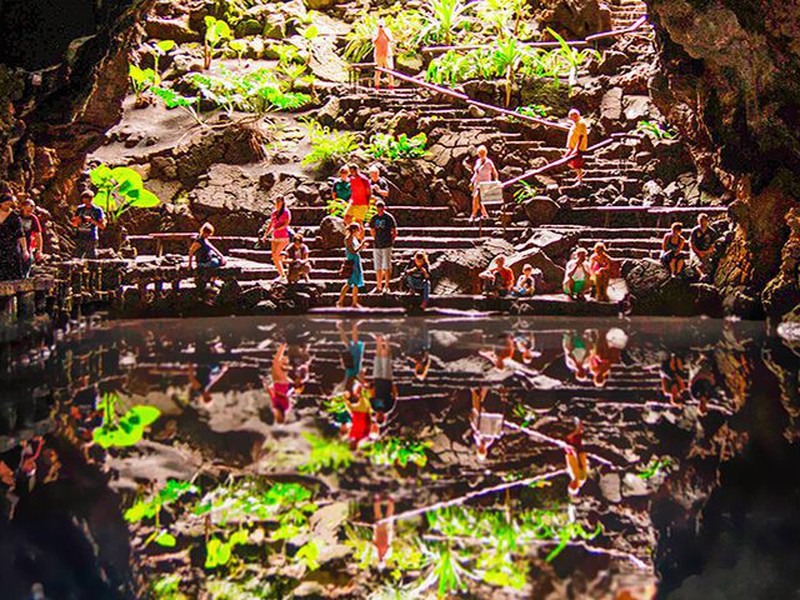La journée se terminera par la visite de Los Jameos del Agua, une œuvre naturelle et artistique intégrée par César Manrique à l’intérieur du même tunnel volcanique.