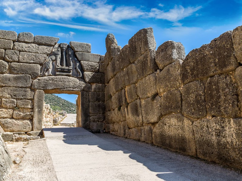 Arrivés à Mycènes, nous visiterons ses imposantes ruines. Pendant 400 ans, ce royaume fut le plus puissant de Grèce car il dominait l'Argolide et exerçait une grande influence sur les autres royaumes mycéniens.