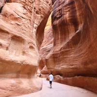 Notre visite commence dans l'impressionnant Siq, un étroit et sinueux défilé bordé de murs de roche imposants, qui nous conduira à la vue inoubliable de la majestueuse cité creusée dans la pierre et baignée par la lumière du soleil du désert.