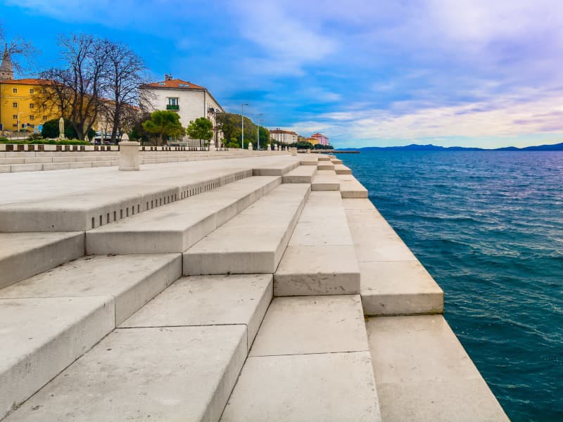 Il s’agit de tubes dissimulés sous des marches en marbre qui, au contact des vagues de la mer, produisent des notes musicales. Cette expérience sensorielle unique permet aux visiteurs de se reposer et se relaxer tout en profitant d’une vue imprenable sur la mer.