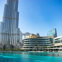À l’une des entrées du Dubai Mall se trouve le Burj Khalifa, le plus haut bâtiment du monde. En face, vous pourrez admirer le lac et la Fontaine de Dubaï.