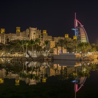 L'excursion commence par des photos à Madinat Jumeirah: c'est l'une des attractions touristiques les plus impressionnantes. Le complexe, qui imite une ville arabe, est composé de bazars, de restaurants, de discothèques et d’un magnifique canal artificiel, rempli de gondoles comme à Venise. Outre le souk, la région possède une plage privée et des hôtels de luxe inspirés par le style des palais arabes «Les mille et une nuits». Visite extérieure à l'hôtel Burj al Arab. Cet hôtel de 321 mètres de haut est la fierté de la côte de Dubaï. Conçu pour vous surprendre, c'est une destination de vacances de haut niveau.