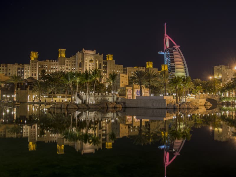 L'excursion commence par des photos à Madinat Jumeirah: c'est l'une des attractions touristiques les plus impressionnantes. Le complexe, qui imite une ville arabe, est composé de bazars, de restaurants, de discothèques et d’un magnifique canal artificiel, rempli de gondoles comme à Venise. Outre le souk, la région possède une plage privée et des hôtels de luxe inspirés par le style des palais arabes «Les mille et une nuits». Visite extérieure à l'hôtel Burj al Arab. Cet hôtel de 321 mètres de haut est la fierté de la côte de Dubaï. Conçu pour vous surprendre, c'est une destination de vacances de haut niveau.