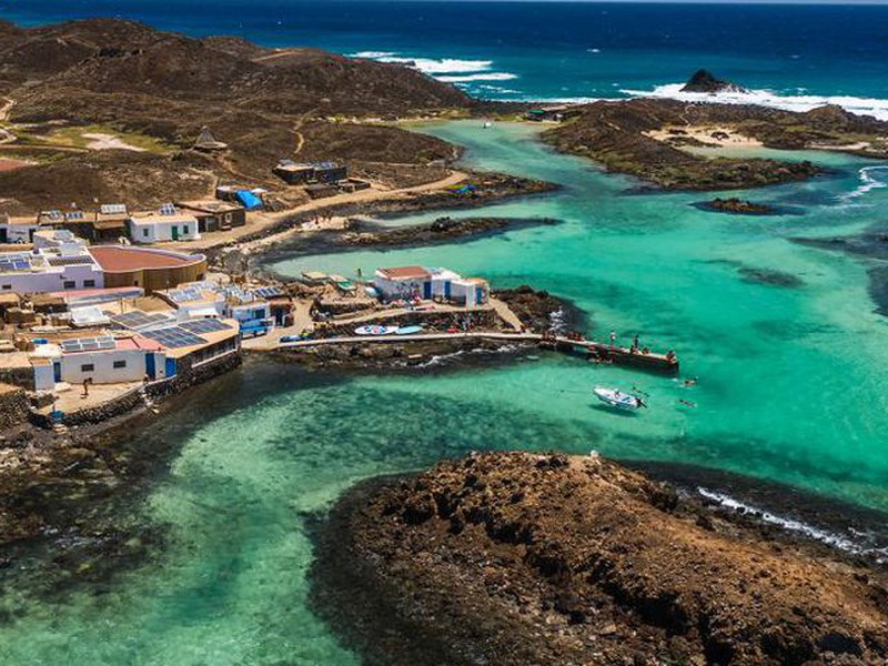 Vous parcourrez l’île de Lobos par vos propres moyens. À partir de ce moment, l’île devient un décor ouvert pour que chaque visiteur en profite à son rythme. Vous pouvez explorer librement des sentiers volcaniques, des plages de sable blanc comme La Concha, des vestiges historiques comme les ateliers romains de pourpre, contempler de loin le phare de Punta Martiño ou simplement vous détendre dans les lagunes turquoise du Puertito.
