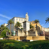 Arrêt et visite guidée à pied: la Place Charles de Gaulle avec la statue de l'empereur et ses quatre frères, la maison natale de Napoléon Bonaparte puis la Place Foch, où se tient le marché.