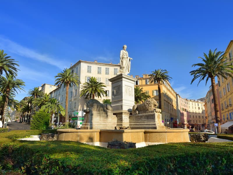 Arrêt et visite guidée à pied: la Place Charles de Gaulle avec la statue de l'empereur et ses quatre frères, la maison natale de Napoléon Bonaparte puis la Place Foch, où se tient le marché.