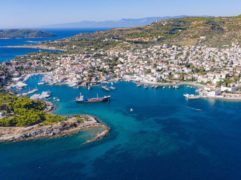 Spetses a été peuplée vers 2500 av. J.-C., selon des découvertes faites à Agia Marina. Au XVIIe siècle, elle commence à se développer et à devenir une grande puissance navale, se distinguant en 1821 en combattant la flotte turque et contribuant à la victoire finale. C’est une île très verte, de petite taille, mais avec de bonnes installations touristiques. Dapia, la capitale de l’île, possède une place impressionnante près du port, pavée de galets blancs et noirs menant à la mer, qui donne son nom à toute la zone portuaire. Il ne faut pas manquer les visites de la cathédrale d’Agios Nicolaos et des églises d’Agii Pantes et de Panagia. Le musée de la ville se trouve dans le manoir de Mexís, datant du XVIIIe siècle. Le port Páleo Limani est fascinant, siège de yachts, de pêcheurs et de constructeurs de canoës.
