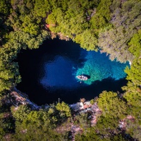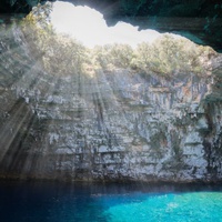 Nous nous dirigerons ensuite vers la grotte de Melissani. Dans la mythologie grecque, Melissani était la grotte des nymphes. Elle met en scène un lac bleu ciel dont le fond est tapissé de pierres. La grotte a été redécouverte en 1951 par Giannis Petrocheilos. La Grotte de Melissani est une caractéristique typique de l'environnement karstique du carbonate aquifère de la région côtière. L'axe vertical donne accès au lac (où vous pouvez faire un tour sur un petit bateau!).