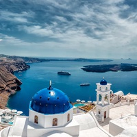 Nous continuons vers Fira, la capitale de l'île et la ville la plus importante de la région. Fira est perchée au bord d'une falaise à 260 m au-dessus du niveau de la mer et offre une vue magnifique sur le volcan submergé. Ses maisons blanchies à la chaux, ses églises aux dômes bleus et ses terrasses baignées de soleil sont autant d'éléments qui la caractérisent. Nous traverserons le quartier catholique, sous les arches du couvent des sœurs dominicaines, le plus ancien quartier du village, Firostefani.