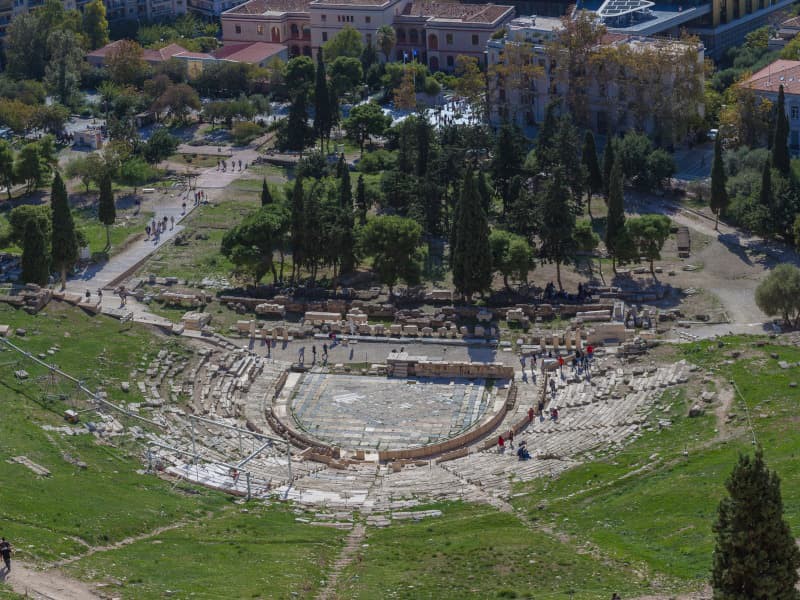 On peut accéder à l’Acropole à pied, où l’on pourra visiter la Grande Stoa restaurée ainsi que le Temple d’Athéna Lindia du IVe siècle av. J.-C. Nous visiterons également l’Ancien Théâtre et les vestiges du Temple de Dionysos. La vue depuis le rocher de l’Acropole est unique.
