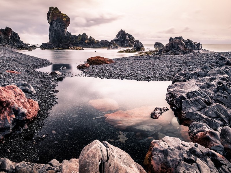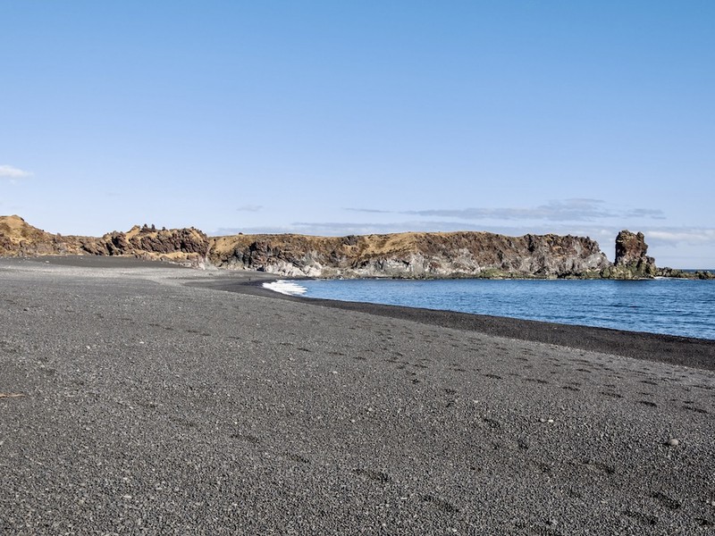 Notre dernière étape nous mènera à la mystérieuse plage noire de Djúpalónssandur, un paysage d'une autre époque où le sable a été remplacé par de petits galets volcaniques. Entourée de formations de lave, cette plage est imprégnée d'histoire, avec des vestiges d'épaves anciennes et les légendaires pierres de force utilisées autrefois par les marins islandais pour prouver leur force. Pour ceux à mobilité réduite, un belvédère permet d'admirer la beauté de ce lieu sans parcourir les sentiers les plus difficiles.