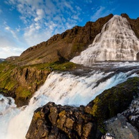 En réalité, il s'agit d'une série de sept cascades qui tombent comme un voile de mariée du bord d'une falaise, et Dynjandi vous laissera sans voix. La rivière prend sa source dans le lac Eyjavatn, sur les plateaux de Gláma, considérés comme un glacier jusqu'à la fin du XIXe siècle. Nous nous arrêterons pendant une heure pour profiter de la cascade et du paysage. Il est possible de faire une courte promenade pour admirer de près la cascade la plus haute, avec une vue spectaculaire sur le fjord et les montagnes environnantes.