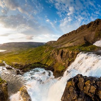 En réalité, une série de sept cascades dévalant comme un voile de mariée du sommet d'une falaise, Dynjandi vous laissera sans voix. La rivière prend sa source dans le lac Eyjavatn, dans les hautes terres de Gláma, considérées comme un glacier jusqu'à la fin du XIXe siècle. Nous nous arrêterons une heure pour profiter de la cascade et du paysage. Vous pouvez faire une courte promenade pour admirer de près la cascade la plus haute et profiter de la vue sur le fjord et les montagnes environnantes.