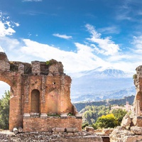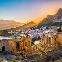 Puis vous visiterez le théâtre grec (entrée à payer sur place), étonnant par ses grands espaces, son acoustique extraordinaire et son emplacement exceptionnel. Ce théâtre, d'un diamètre de 109 mètres a été reconstruit dans le style romain au IIe siècle. C. Il est le deuxième plus grand théâtre de Sicile après Syracuse. Des hautes terres, on bénéficie d'une vue spectaculaire sur le majestueux mont Etna, le plus grand volcan d'Europe, toujours actif.