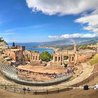 La petite ville pittoresque de Taormina bénéficie d'un superbe emplacement sur une terrasse surplombant la mer Ionienne, sur la côte est de la Sicile. Elle conserve encore son caractère médiéval, même si elle est devenue l'une des stations touristiques les plus populaires de la Méditerranée. Nous débutons notre visite à pied, au cours de laquelle vous pourrez admirer le célèbre Palais Corvaja (gothique) datant du XVe siècle (visite extérieure).