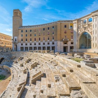 Lecce fut une ville grecque puis romaine. Notre promenade nous mènera place Sant'Oronzo, qui abrite certains des plus importants vestiges romains: l'amphithéâtre du Ier siècle après JC de 25.000 places et une colonne qui, à l'origine, marquait la fin de la Via Appia à Brindisi.