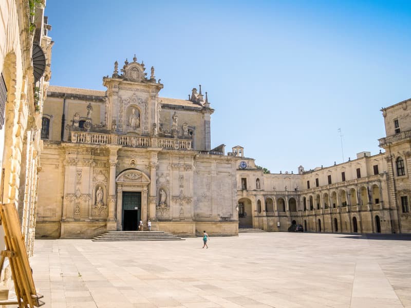 La visite commencera "Porta Napoli", à quelques mètres de l'église de Santa Croce, dont la façade baroque est aussi exubérante que son intérieur Renaissance est austère.