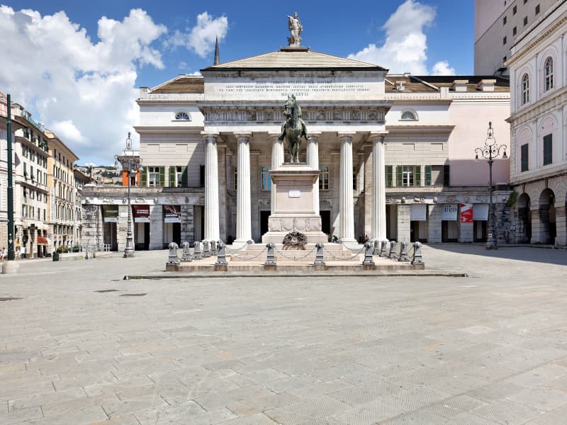 Nous continuerons notre route vers la Plaza de Ferrari, considérée comme le cœur commercial, économique et financier de Gênes. Sur la place, vous pourrez contempler la monumentale fontaine de bronze, l'élégant théâtre d'opéra «Carlo Felice», le palais des Doges, la résidence des gouverneurs de la République de la mer et l'église de Jésus (visite extérieure).