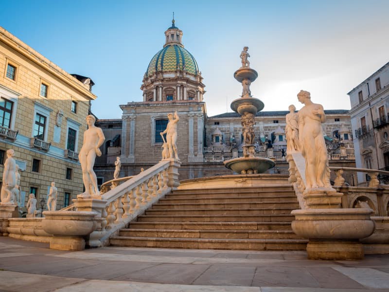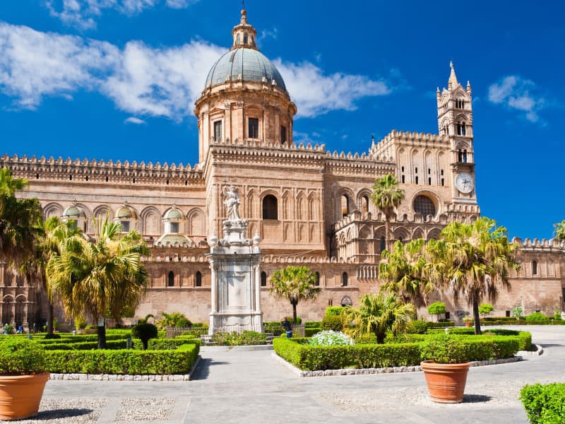 Chaque communauté a laissé sa marque sur les célèbres monuments. La visite à pied commencera par la magnifique Piazza Quatre Canti puis nous irons voir la Fontana Pretoria, l'Eglise de la Martorana (extérieur) l'Église de San Cataldo (extérieur) et la Piazza Bellini. Puis nous achèverons notre tour par la Cathédrale de Palerme (extérieur) et la Chapelle Palatine (extérieur) à l'intérieur du Palais Royal.