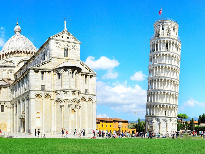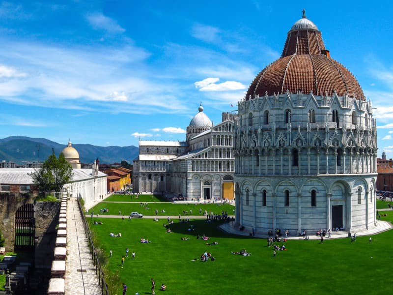 Nous commencerons notre visite devant l’imposante muraille de l’ancienne ville et son cœur religieux : la Place des Miracles, classée au Patrimoine mondial de l’UNESCO et considérée comme l’un des ensembles d’art médiéval les plus importants au monde. Nous y admirerons le célèbre complexe monumental composé de la Cathédrale Santa Maria Assunta (Duomo), du Baptistère de Saint-Jean-Baptiste, du Camposanto Monumental, du Clocher et, bien entendu, de l’emblématique Tour de Pise.