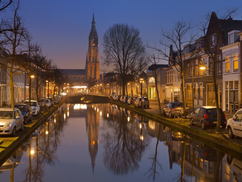 Delft, vieille ville des Pays-Bas, fondée au XIIIe siècle, est nommée la ville royale. La Nieuwe Kerk (Nouvelle église) abrite le panthéon de la famille royale néerlandaise. Son clocher culmine à 108,75 mètres, le deuxième plus élevé aux Pays-Bas. Vous pourrez flâner à travers le marché et les magnifiques canaux de Delft.