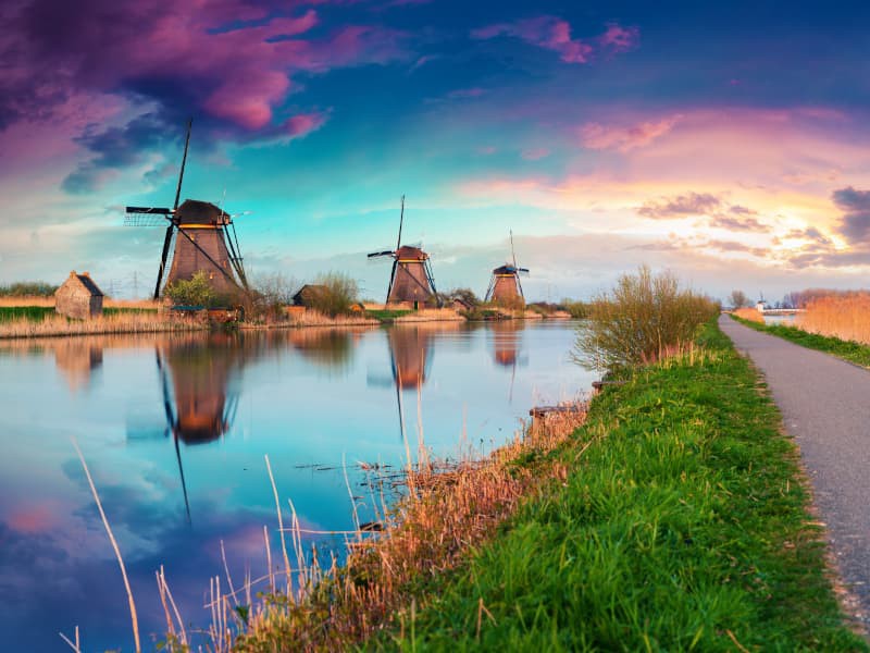 Kinderdijk, situé à seulement 25 kms de Rotterdam, est réputé pour ses 19 moulins à vent inscrits au Patrimoine mondial de l'UNESCO qui offrent un merveilleux paysage de carte postale.