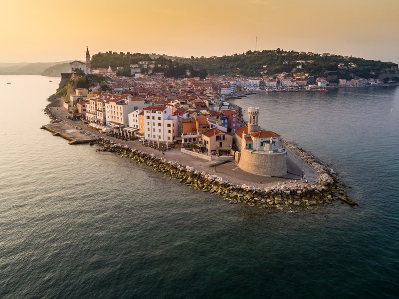 Nous continuons vers Portoroz, une petite ville médiévale qui a acquis sa renommée et sa richesse grâce à la production de sel des salines, l’une des plus importantes de cette région par le passé mais aujourd'hui abandonnée. Les composants naturels et les effets bénéfiques des Salinas sur la santé ont permis le développement du tourisme à Portoroz et au XIXe siècle, les premiers hôtels et sources thermales ont été construits.